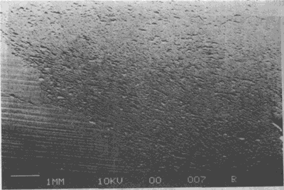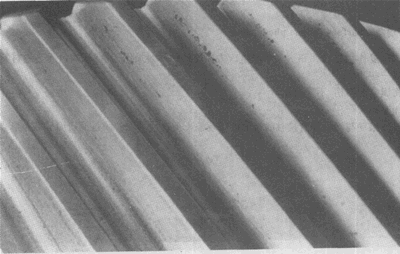大齒輪齒面的初期點蝕。點蝕密度最大區與表面載荷最高區相一緻。