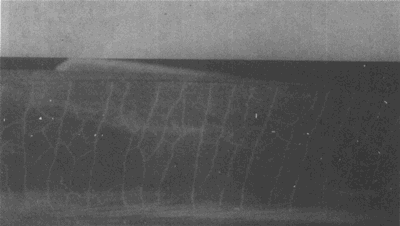 在大齒輪齒頂形成的淬火裂紋(這種裂紋通常都在這個區域出現)。