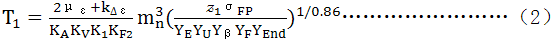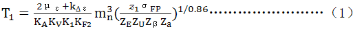式(B2)與正文的公式(8)等效,其符号意義及取值同公式(8)。σHP及YF分别按大 、小齒輪確定,σHP1/YF1和σHP2/YF2值,取其中的小值代入式(B2)。對於人字齒輪,(2με+k△ε)按單側齒寬計,算得的T1值爲單側齒寬的名義轉矩。