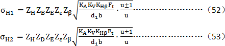 小輪和大輪的計算接觸應力σH­­1和σH­­2分别按下述兩式確定: