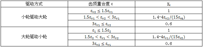 重合度系數Xε是将假定載荷全部作用於小輪齒頂時的局部瞬時溫升θflaE折算成沿沿齧合線的積分平均溫升θflaint的系數 。