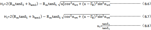 錐齒輪的邊疆接觸區爲稍帶錐度的帶狀形。然而,在大多數情況,可較好地用平行的帶狀接觸區來近似,連同兩個切向速度的重合並(bìng)在方向上與長軸垂直,尤其是當曲率半徑的正確定值和赫茲接觸帶已知時,可直執著(zhe)使用權原來的公式(A.1)。爲瞭方便起見,公式可以被改寫,即用直線來近似“8”字作用線,並(bìng)且系數用錐齒輪的一般量來表達。