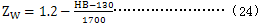 HB——齒輪副中較軟齒輪輪齒面的布氏硬度值;當HB<130時,取ZW=1.2;當HB>470時,取ZW=1;當大小輪有相同的硬度時 ,取ZW=1.0。
