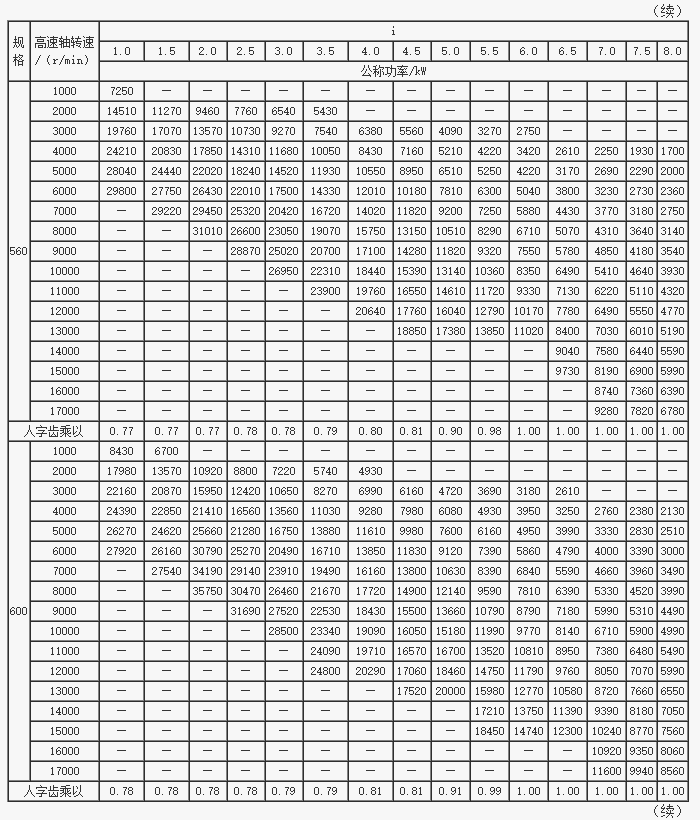 GS系列高速漸開線圓柱齒輪箱公稱功率(三)(JB/T7514-94)