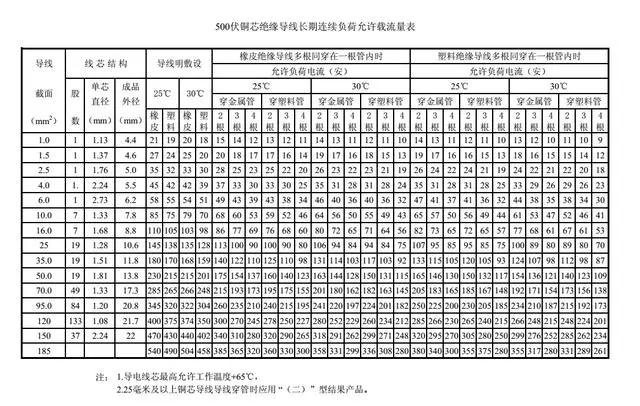 那麽實際工作中,我們電工也有自己的速算口訣的 ,那就是:二點五下乘以九,往上減一順号走。 三十五乘三點五,雙雙成組減點五。 條件有變(biàn)加折算,高溫九折銅升級。 穿管根數二三四,八七六折滿載流。意思是:2.5平方的鋁芯線的載流量是它的額定截面積乘以9等於(yú)22.5A,如果是銅芯線就要升一級,就是2.5的鋁芯線相當於(yú)1.5平方的銅芯線。穿多根線時候要打折扣,就是後面所說的穿管根數二三四,打折後電線的是額定載流量的八七六折。