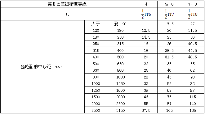 注:一個(gè)軸向齒(chǐ)距内的齒(chǐ)向公差按軸向齒(chǐ)距查表。