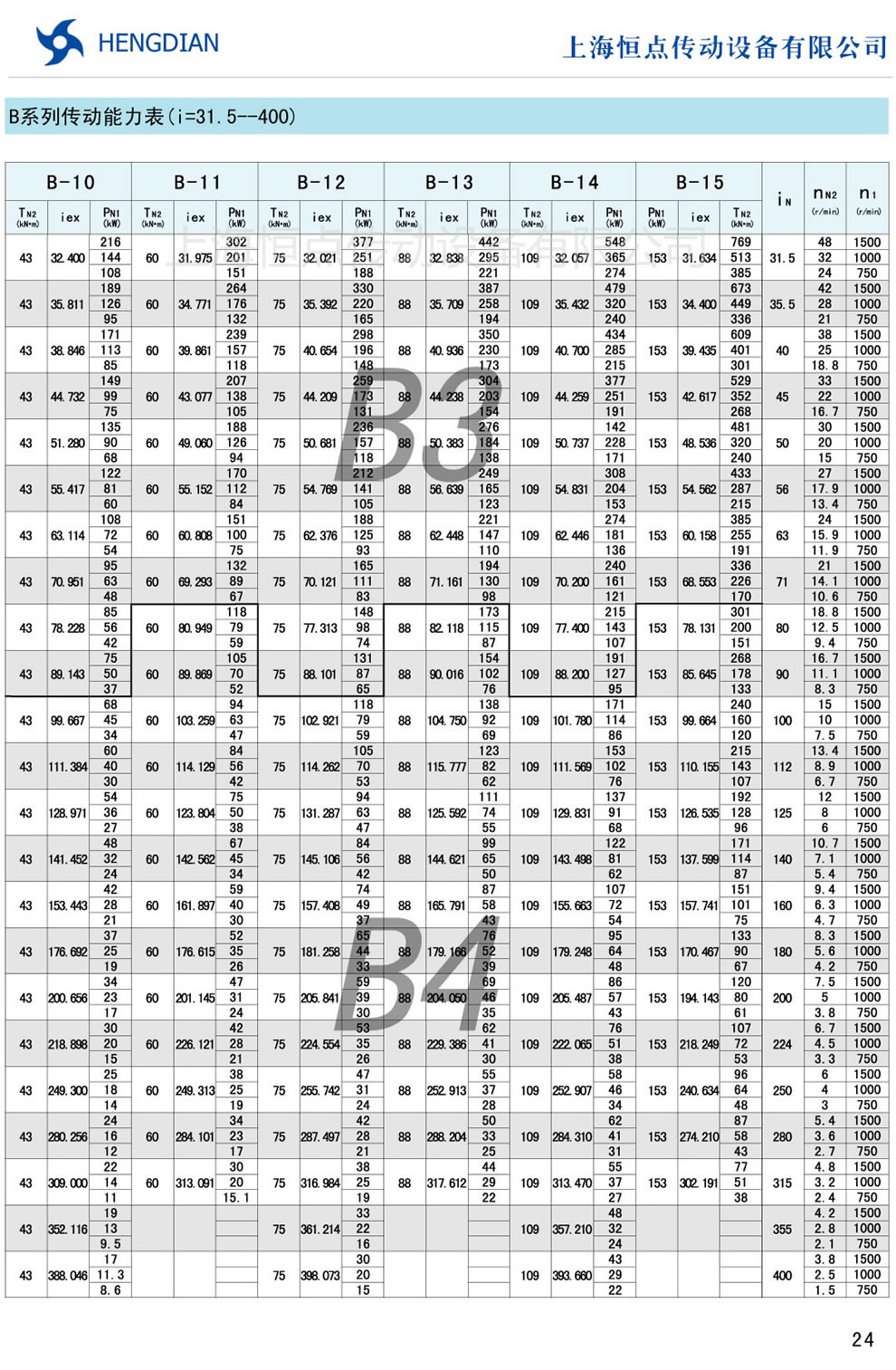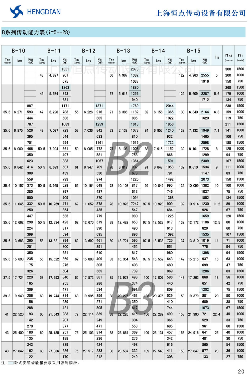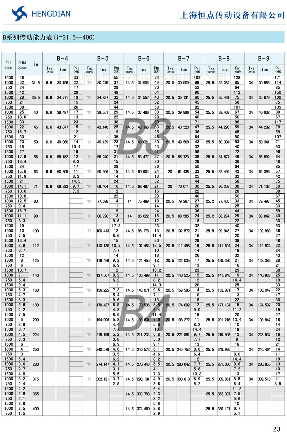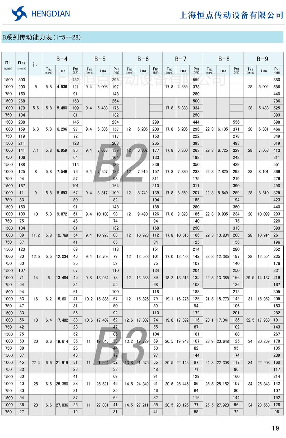 9 - B系列傳動能力表 10 - H系列額定熱容量