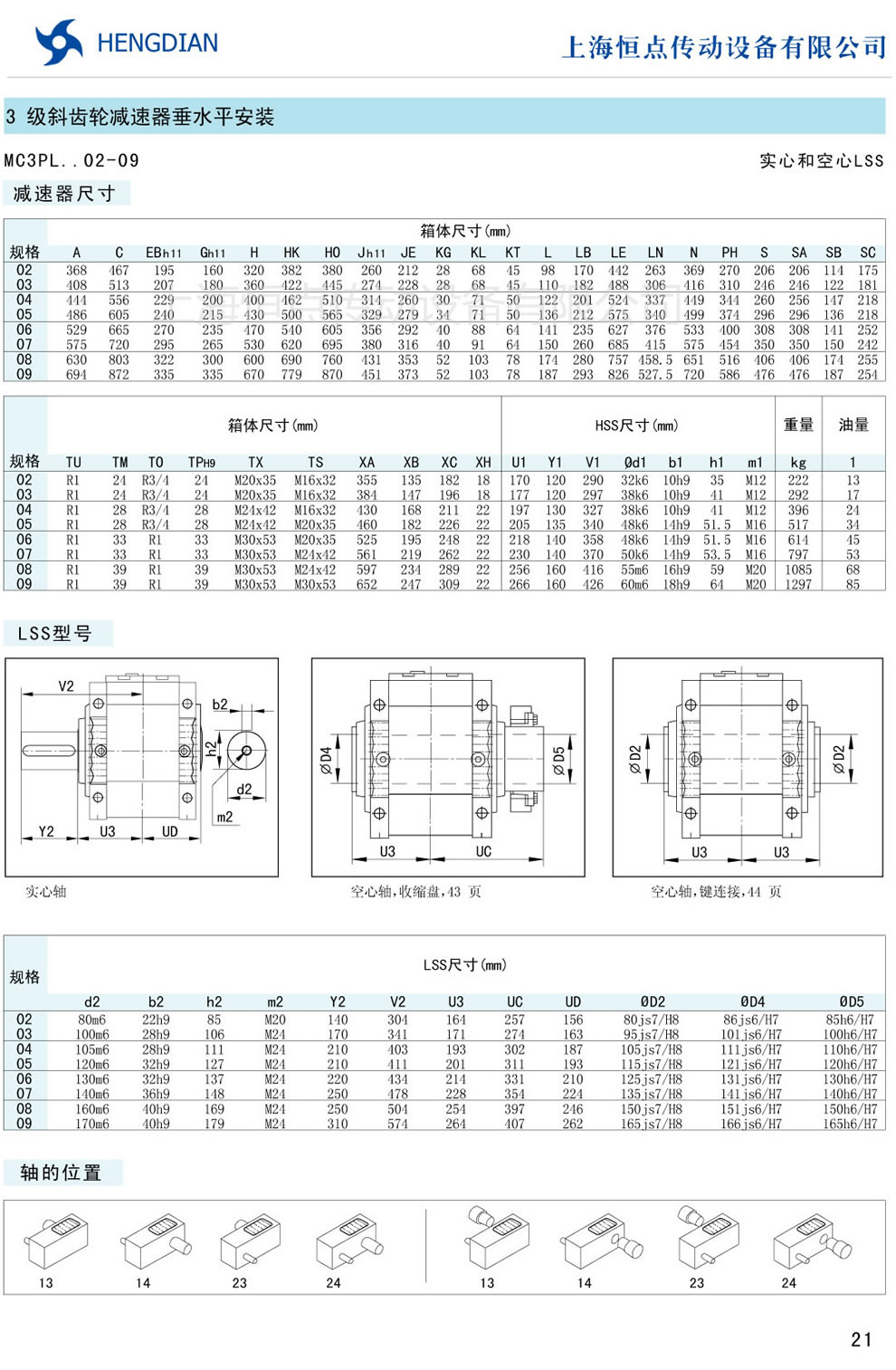 MC硬齒面減速器 詳細選型參數及尺寸參數:
