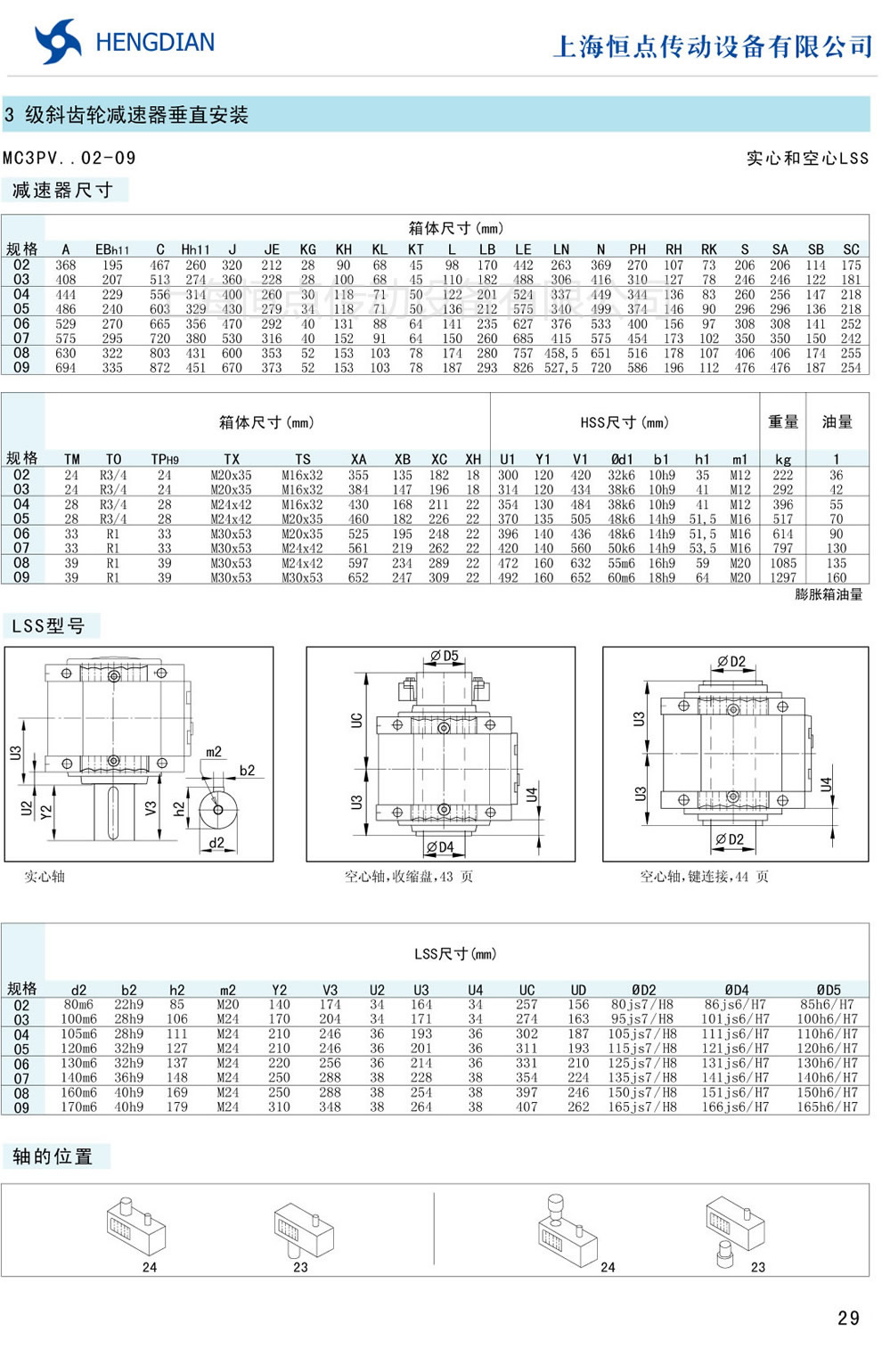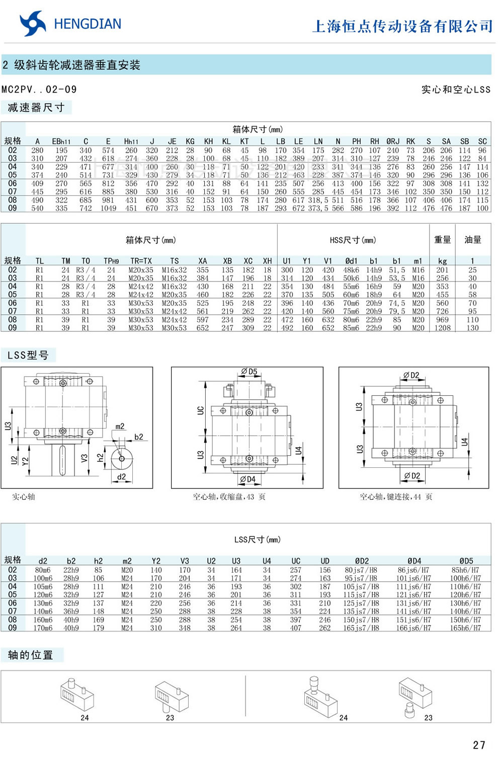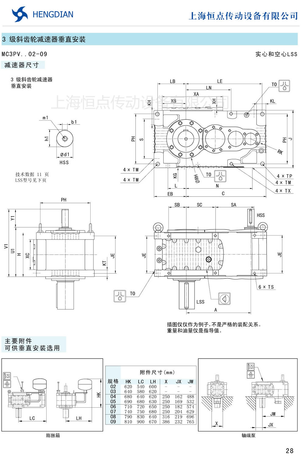 傳動能力和外型安裝尺寸/斜齒垂直安裝 - MC硬齒面減速器