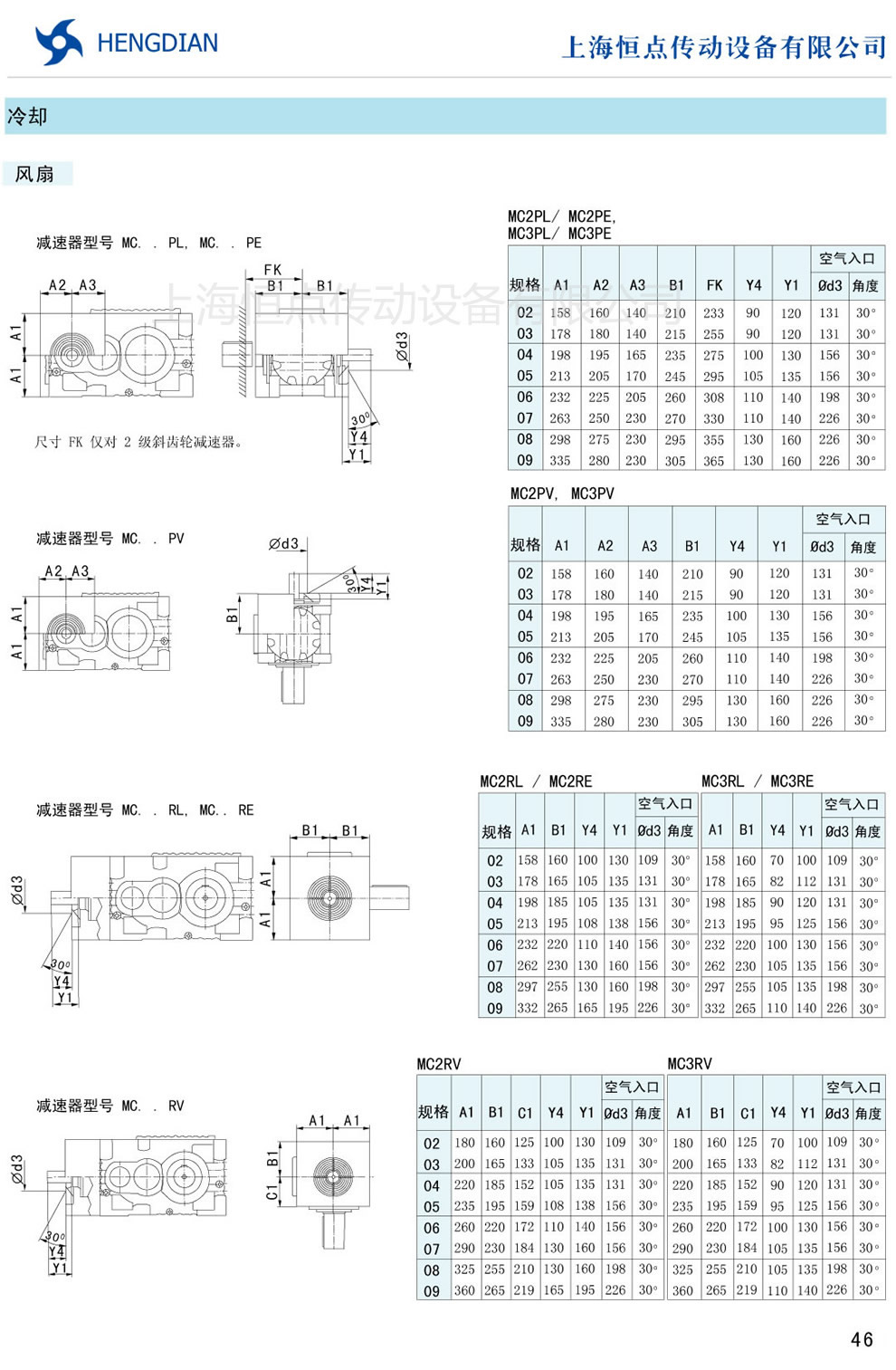 MC硬齒面減速器 詳細選型參數及尺寸參數: